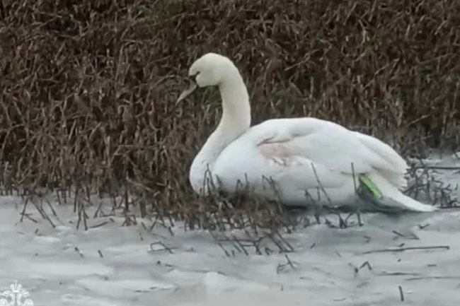 Прохожие помогли лебедю, примерзшему к водоему.